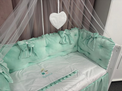 PEPPIbambini ROYAL Mint Velours Literie de bébé 11 pièces linge parure de lit 100% coton avec broderie avec moustiquaire motif brodées