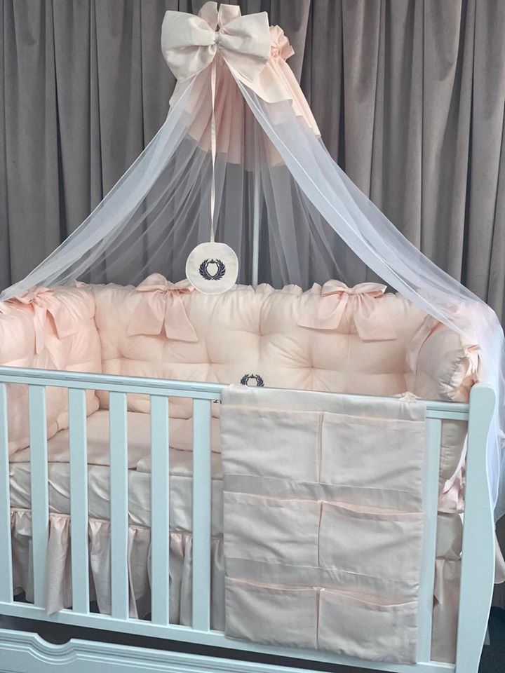 PEPPIbambini ROYAL Somon Celestin Literie de bébé ensemble set complet 11 pièces linge parure de lit 100% coton avec broderie avec moustiquaire motif brodées