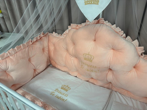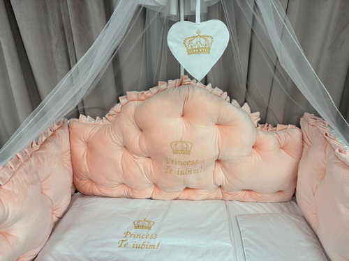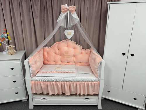 PEPPIbambini ROYAL Somon Velours Literie de bébé 11 pièces linge parure de lit 100% coton avec broderie avec moustiquaire motif brodées