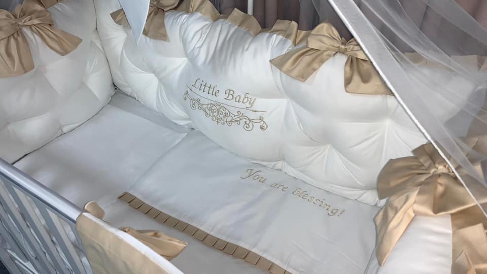 PEPPIbambini ROYAL White Beige Little Literie de bébé 11 pièces linge parure de lit 100% coton avec broderie avec moustiquaire motif brodées