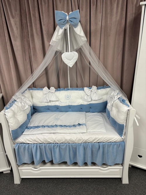 Be the first to review “PEPPIbambini ROYAL White Blue Velours Literie de bébé 11 pièces linge parure de lit 100% coton avec broderie avec moustiquaire motif brodées”