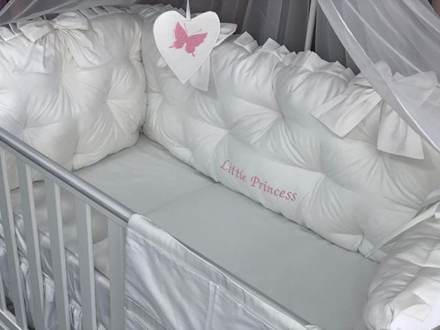 PEPPIbambini ROYAL White Literie de bébé ensemble set complet 11 pièces linge parure de lit 100% coton avec broderie avec moustiquaire motif brodées
