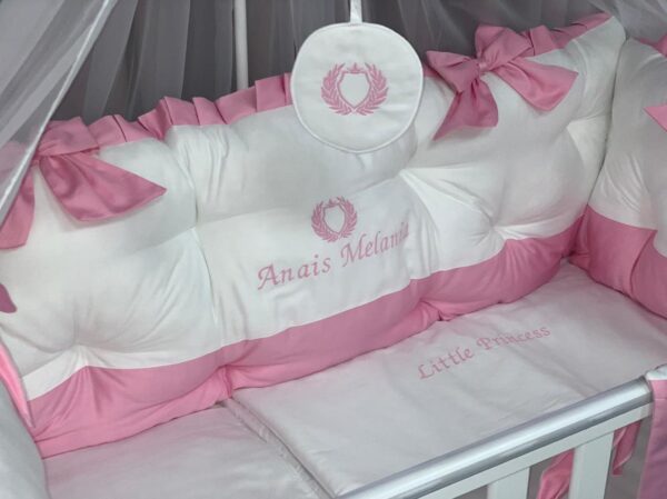 PEPPIbambini ROYAL White Pink Anais Literie de bébé 11 pièces linge parure de lit 100% coton avec broderie avec moustiquaire motif brodées