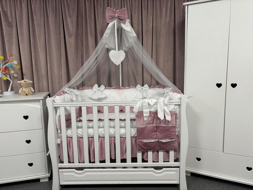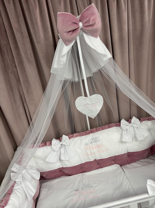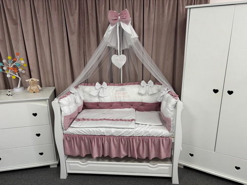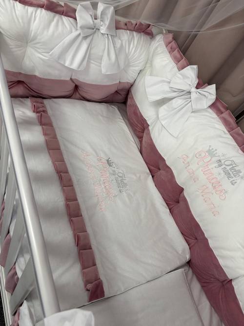 Be the first to review “PEPPIbambini ROYAL White Pink Velours Literie de bébé 11 pièces linge parure de lit 100% coton avec broderie avec moustiquaire motif brodées”