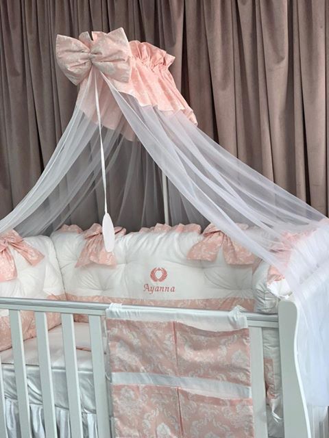 PEPPIbambini ROYAL White Somon Ayanna Literie de bébé ensemble set complet 11 pièces linge parure de lit 100% coton avec broderie avec moustiquaire motif brodées