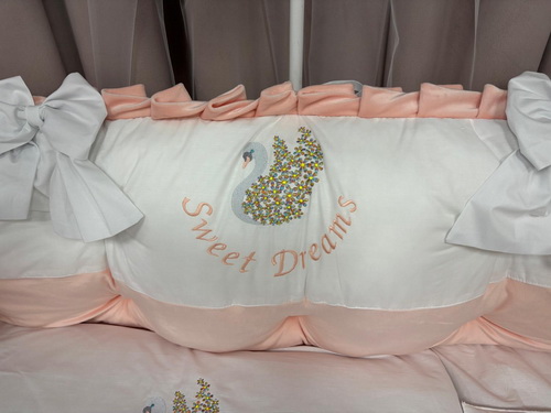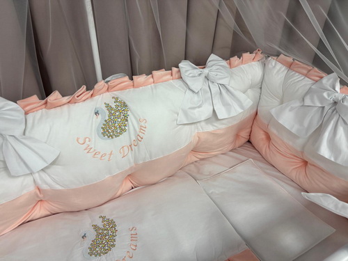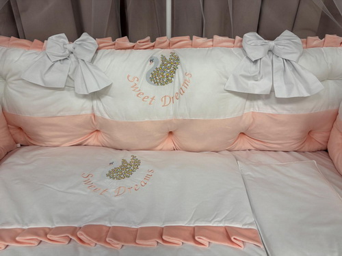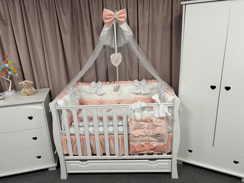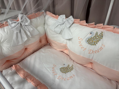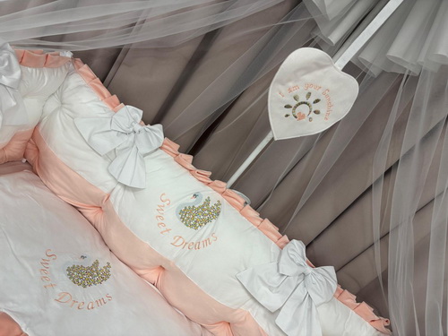PEPPIbambini ROYAL White Somon Velours Literie de bébé 11 pièces linge parure de lit 100% coton avec broderie avec moustiquaire motif brodées